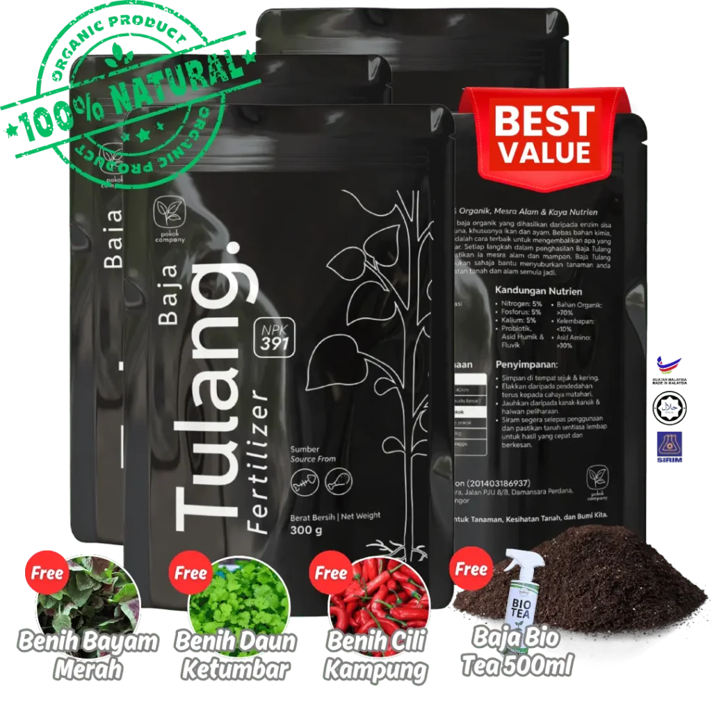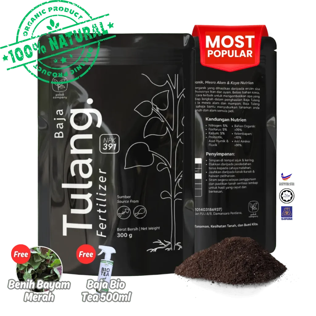 Nikmati kelebihan pokok sihat & subur dengan penggunaan bone meal Baja Tulang yang konsisten untuk hasil tanaman berkualiti