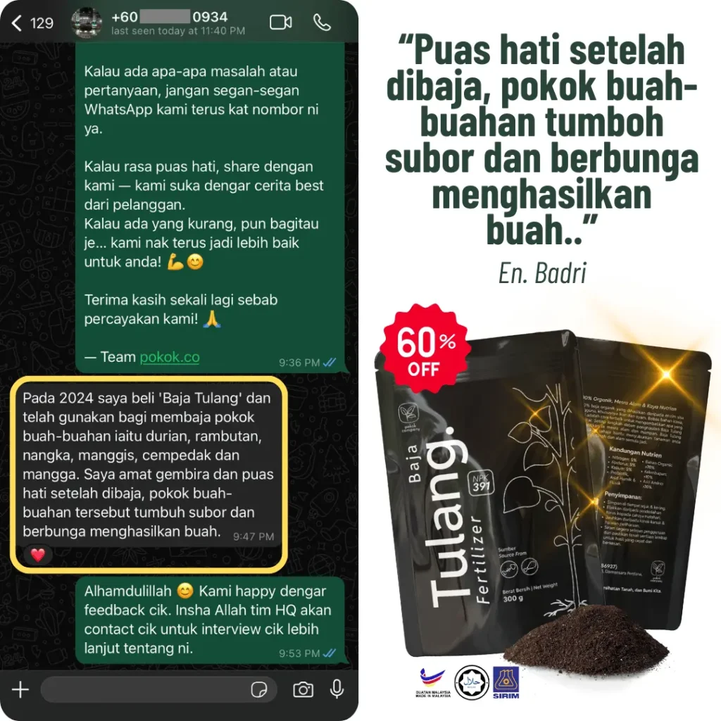 Bayangkan kepuasan selepas menggunakan Baja Tulang